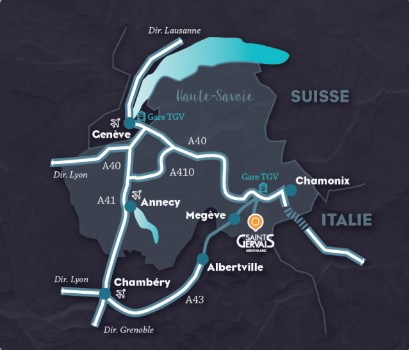 Saint Gervais Mont Blanc is a mountain village situated in the French Alps bordering Switzerland and Italy, near the resorts of Chamonix and Megève, the Mont Blanc and under an hour drive from Geneva airport. Saint Gervais bebenefits also from a TGV link to Paris.